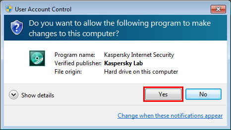 6. Muncul pertanyaan apakah akan mengijinkan Kaspersky diinstal di komputer Anda. Klik YES